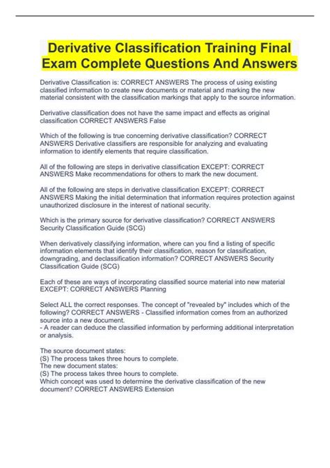 Download Derivative Classification Final Exam Answers Reader